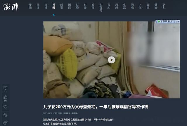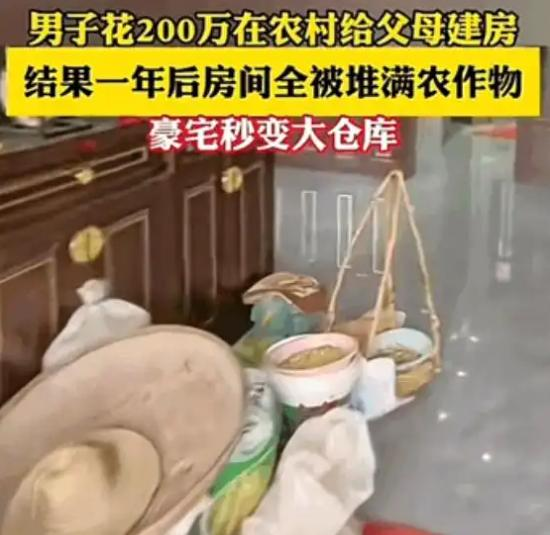 金碧辉煌的洋房内,稻谷堆到天花板,小麦袋占领真皮沙发,萝卜干在落地窗前沐浴阳光,湖北一位孝子为父母打造的豪宅,谁知道最后被老人改造成了立体化粮仓。